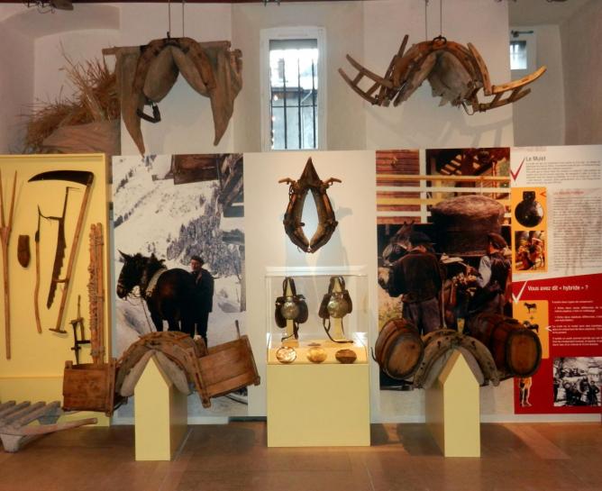 Il est difficile d'évoquer la vie de l'agriculteur alpin sans parler du mulet, principal auxiliaire dans de très nombreux travaux. Le Musée des Traditions Populaires de Moûtiers lui fait une belle place grâce à de nombreux objets qui lui sont liés.