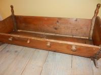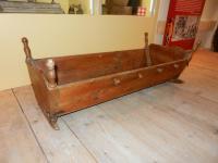 Sur les côtés on a des « taquets » permettant d'entrecroiser des bandes de toiles pour maintenir fermement l'enfant sur sa couche. Celui-ci, emmailloté dans ses langes des pieds à la tête, était donc prisonnier du berceau. Les croyances populaires justifiaient cela en disant qu'autrement l'enfant risquait de pousser tordu !